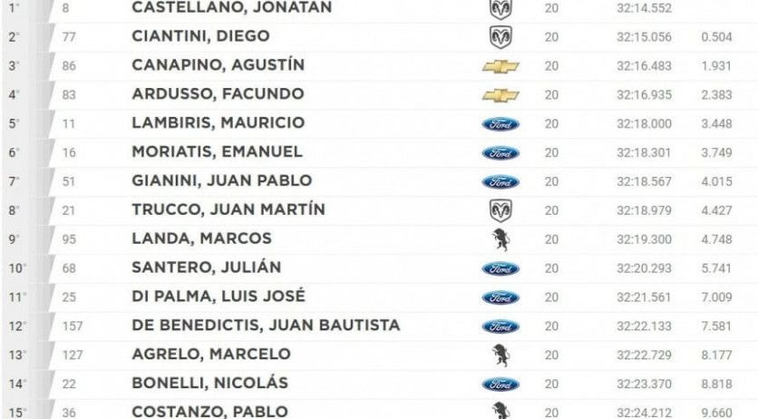 En la largada, Ciantini y Castellano apenas se tocaron y el de Lobería fue por afuera en la primera cruva aunque prevaleció el Chino de Balcarce. Tercero era Facundo Ardusso y cuarto Mauricio Lambiris, que superó a Agustín Canapino, que también perdió con Leonel Pernía.