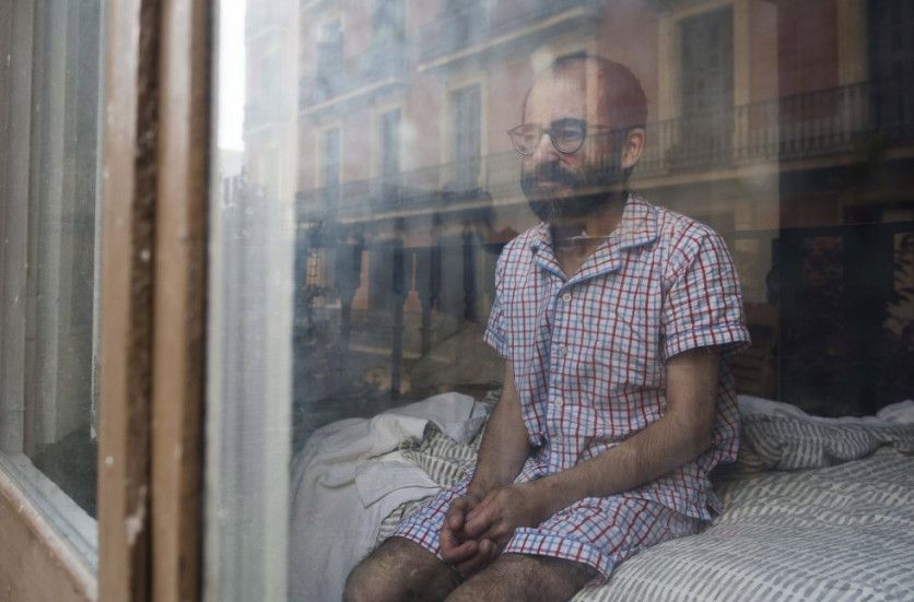 Joan, sentado en la cama tras despertarse en Barcelona, el 30 de mayo de 2020. En su diario escribió el 23 de marzo: "Comienza una nueva semana de confinamiento que cada vez se hace más complicado. Wayra ha salido a la calle a comprar y, como cada vez, vuelve preocupada por la posibilidad de haber traído el maldito virus a casa. Mantener la calma en un momento sin certidumbres ni seguridades es muy complicado, y nos puede llevar a caer en la tentación de la preocupación excesiva". WAYRA FICAPAL