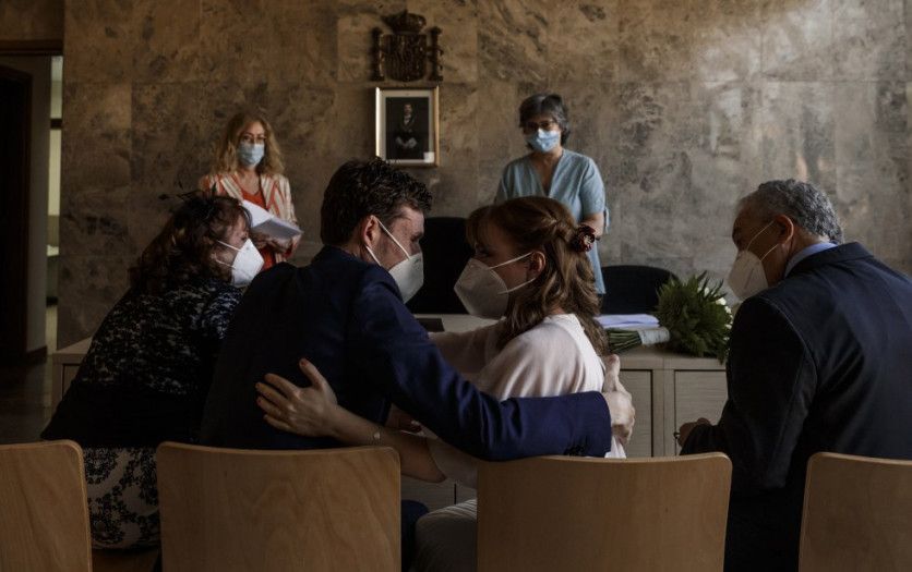 Amanda y David se casaron el 5 de junio, el mismo dia en que David cumplia 35 anos. Durante la pandemia le detectaron un cancer en estado terminal. Fallecio el 11 de julio. Madrid, 5 de junio de 2020. PABLO GARCÍA SACRISTÁN