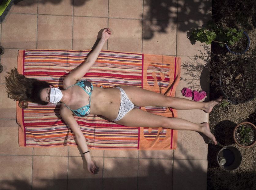 La mascarillla se ha convertido en un objeto indispensable en el día a día. En esta imagen, el fotógrafo tomó una imagen de una vecina suya, en Banyoles (Girona), el 14 de abril de 2020. TINO SORIANO