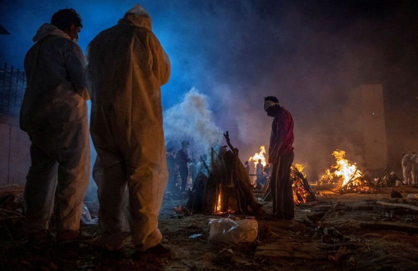 Con 346.786 nuevos casos confirmados en las últimas 24 horas, la India tiene los peores datos de propagación del mundo, superando con creces a Estados Unidos, con 62.399 casos en la última jornada, y a Brasil con 69.105. En la imagen, incineración de cuerpos de víctimas de la covid en la capital india, Nueva Delhi, este sábado. DANISH SIDDIQUI REUTERS