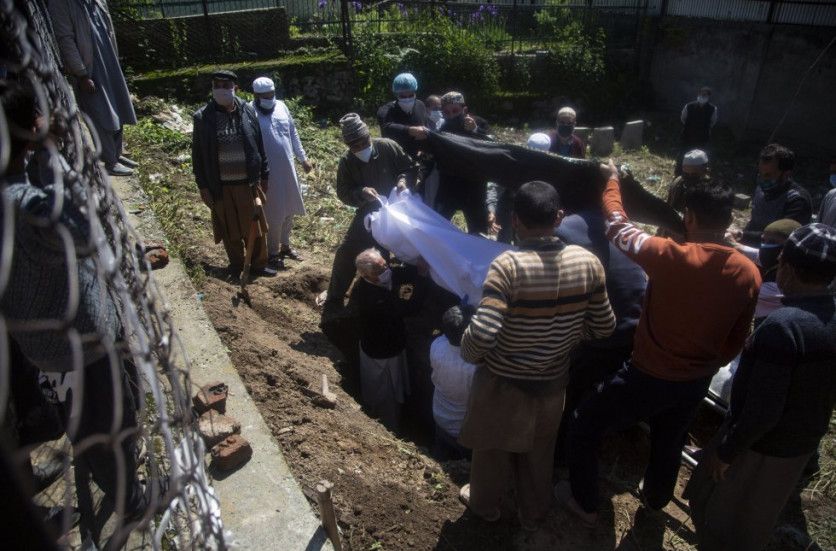 Entierro de una víctima de la covid, en Srinagar, este domingo. La canciller alemana, Angela Merkel, anunció ayudas a India en la lucha contra el coronavirus, después de que la situación se agudizara en el país asiático. MUKHTAR KHAN AP