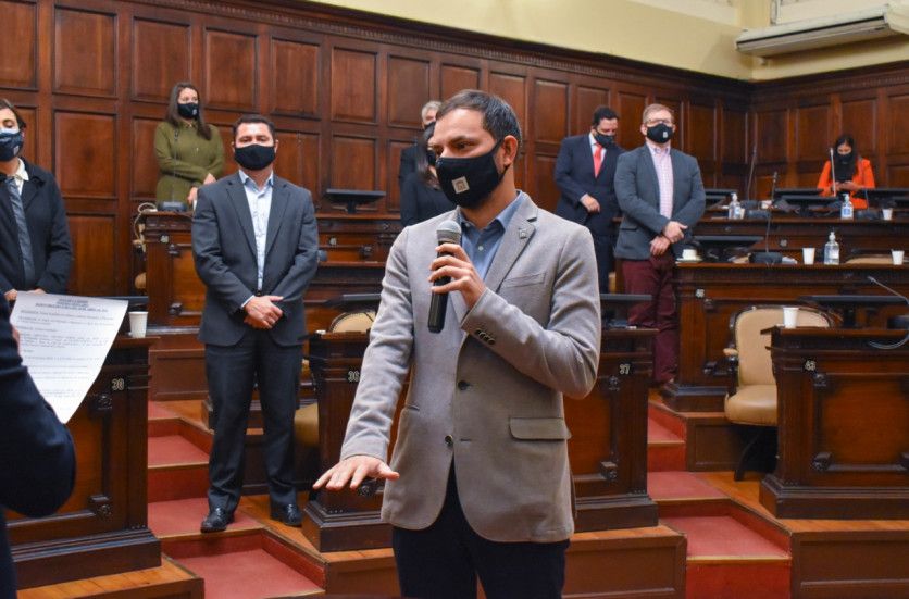 "Esta Cámara de Diputados, en conjunto con la Cámara de Senadores fue la primer Legislatura del país que emitió una Ley sancionada en forma virtual. Recordemos esa sesión en la cual aprobamos la primera Ley en forma virtual y no había nadie en este recinto. Este recinto estaba vacío, solamente estuve acompañado por la Secretaria Legislativa y el Secretario Administrativo, creo que cuando uno mira el texto de esa Ley realmente se le pone la piel de gallina. Este Cuerpo ha formado parte de ese hecho histórico, y que con el tiempo va a tener mucha más importancia".