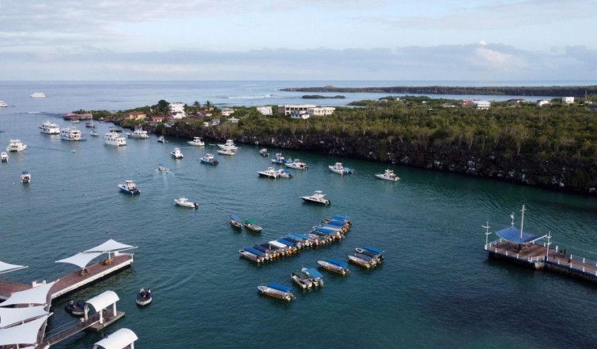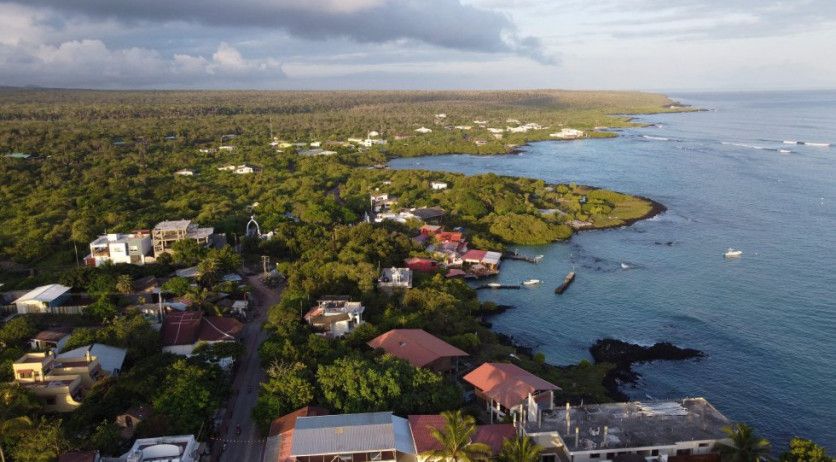 Con una población de tan solo 30.000 habitantes, este santuario ecológico del Pacífico estuvo estrictamente confinado durante cuatro meses en 2020. En la imagen, vista aérea de Puerto Ayora en la Isla Santa Cruz, en las islas Galápagos. RODRIGO BUENDÍA, AFP.