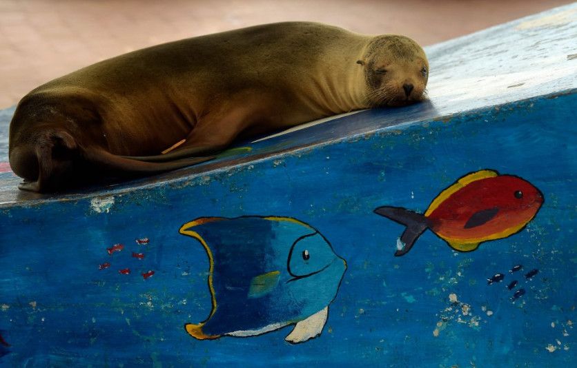 Un león marino descansa en Puerto Ayora, isla Santa Cruz. RODRIGO BUENDÍA, AFP.