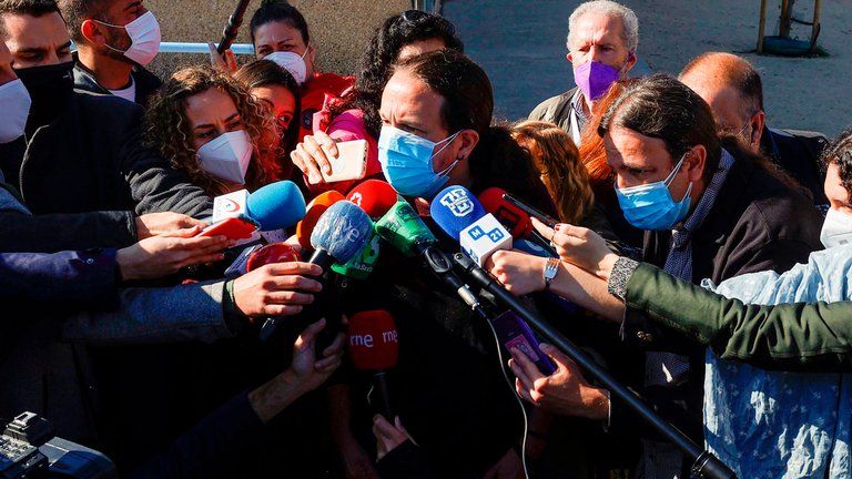 Pablo Iglesias de Unidas Podemos habla con la prensa luego de emitir su voto en Galapagar (EFE)