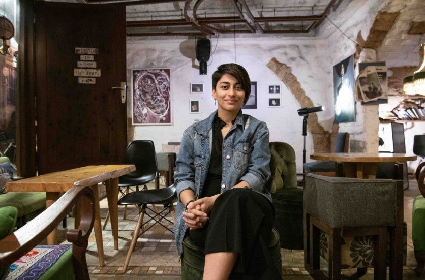 La activista Eman Ibrahim posa en el café Warshe 13 del barrio cristiano Al Mina de Trípoli. NATALIA SANCHA