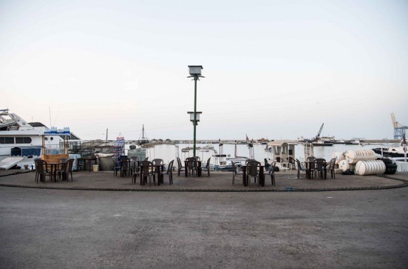 La crisis económica y la pandemia vacían los pequeños restaurantes en el puerto de Trípoli en el ramadán, mes de ayuno musulmán, otros años abarrotados de gente a la hora del iftar, la de ruptura del ayuno. NATALIA SANCHA