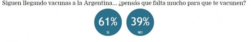 Ante esta situación, nuestro diario consultó a sus lectores y los oyentes de Radio Andina "¿Pensás que falta mucho para que te vacunen?" y hubo una respuesta muy interesante, gracias a un universo de algo más de dos mil votantes.