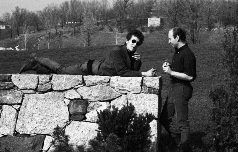 Con un amigo en 1964, en Massachusetts. Dylan decidió viajar durante buena parte de ese año, al estilo de Sal Paradise y Dean Moriarty en la famosa novela de Jack Kerouac En el camino. Vagabundeó por la América profunda y por Europa. En Alemania conoció a Nico, que años más tarde grabaría el influyente disco de la portada del plátano, diseñado por Andy Warhol, The Velvel Undreground & Nico. Ese año de 1964 Dylan publicó su cuarto trabajo, 'Another Side Of Bob Dylan', un disco que en cierta manera rompe con el folk protesta. Algún crítico dijo que era "un trabajo de rock, pero sin batería ni guitarra eléctrica". JOHN BYRNE COOKE ESTATE