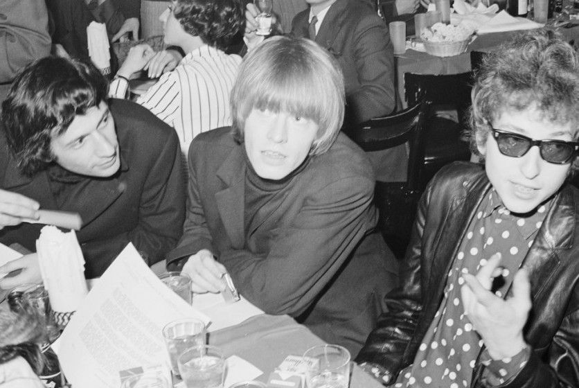 Con el rolling stone que más intimó Dylan fue con Brian Jones. Fue Jones el primero que se acercó, rendido al talento del creador de 'Like A Rolling Stone'. Luego la admiración fue mutua. El productor del documental 'Rolling Stone: Vida y muerte de Brian Jones' (2019), Nick Reynolds, contó al 'Sunday Express' que hubo una larga temporada en la que "se llamaban por teléfono todos los días". Algunos medios han asegurado que fue Dylan el que pagó el costoso féretro de Jones cuando murió en 1969 a los 27 años. En la imagen, Jones y Dylan en Nueva York en 1965. MICHAEL OCHS ARCHIVES