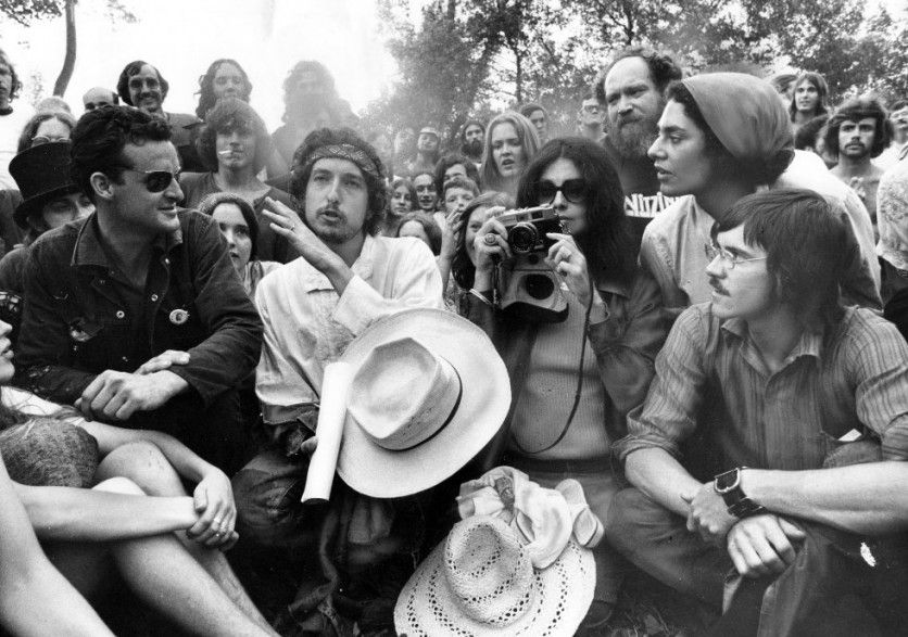 En 1972, en el canadiense Mariposa Folk Festival. Hablando mientras la gente escucha embelesada, algo que le ha pasado toda la vida, más con sus canciones que con sus comparecencias públicas, que han sido escasas. "Nadie es libre. Incluso los pájaros están encadenados al cielo", dijo en una entrevista en Time' en los sesenta KEITH BEATY