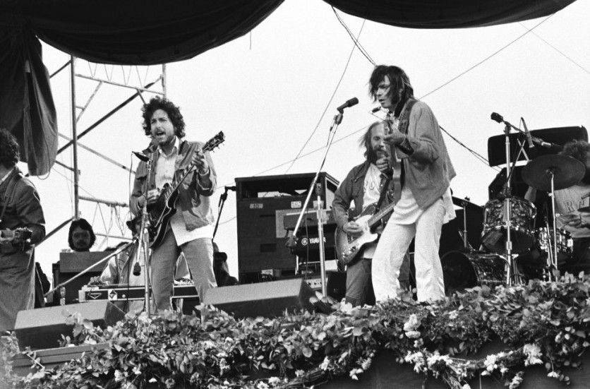 Dos colosos que se respetan y admiran. Neil Young es cuatro años menor que Dylan y cuando comenzó el de Duluh era una de sus grandes influencias. Durante todo este tiempo se han encontrado varias veces en el escenario, casi siempre de forma simbólica, sin pretender cambiar la historia de la música. Simplemente para disfrutar unos minutos en el escenario y dar la oportunidad a los asistentes de decir: "Yo los vi juntos una vez". Como ocurrió en la imagen de la foto, en 1974, en Los Ángeles. La última fue hace poco, en 2019, en Irlanda. Tocaron 'Will the Circle Be Unbroken', un tema popular de principio del siglo XX que han interpretado muchos artistas: Carter Family, John Lee Hooker, Willie Nelson, Leon Russell, Gregg Allman o el propio Dylan con The Band. RICHARD MCCAFFREY