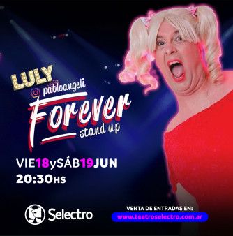 Luego de ganar el premio Estrella de Mar a mejor show de stand up por "Luly comedy Star", Pablo nos trae su nuevo show sobre su personaje Luly: "Luly Forever", el próximo viernes 18 y sábado 19 de junio a las 20:30, en el Teatro Selectro.