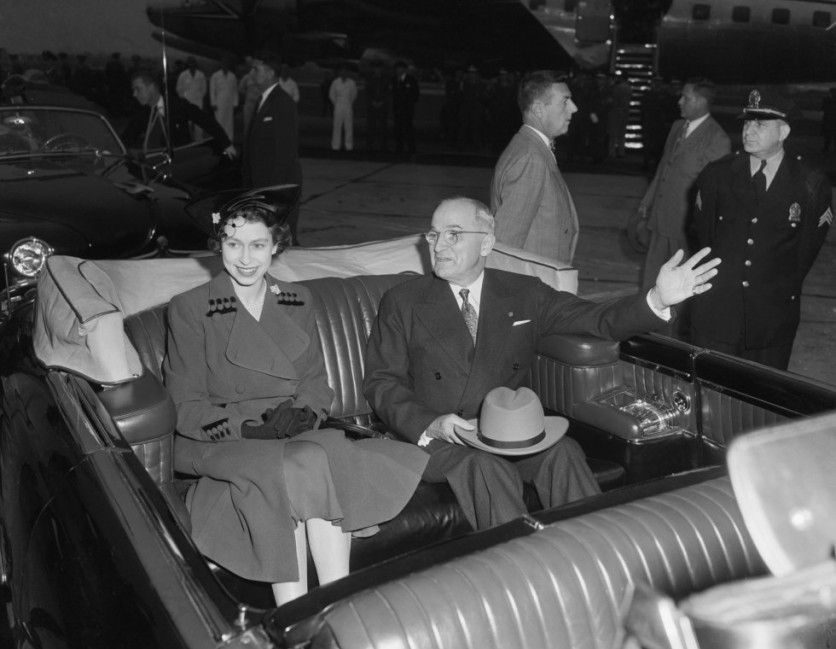 Su primera reunión con un presidente estadounidense fue con Harry S. Truman, en 1951. Isabel de Inglaterra todavía no era monarca, sino princesa. Su padre, el rey Jorge VI, estaba bastante enfermo (moriría tres meses después). Durante ese encuentro estaría acompañada del duque de Edimburgo. BETTMANN ARCHIVE GETTY