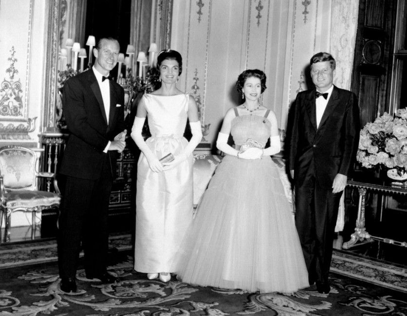 La visita que recogió la serie 'The Crown'. El presidente estadounidense John Kennedy (a la derecha) y su esposa Jacqueline (segunda por la izquierda) fotografiados con la reina Isabel II y el duque de Edimburgo en el palacio de Buckingham, en Londres, en junio de 1961. Según la ficción de Netflix, la primera dama de EE UU criticaría los estilismos de Isabel de Inglaterra al considerarlos anticuados y pasados de moda. PA IMAGES GETTY