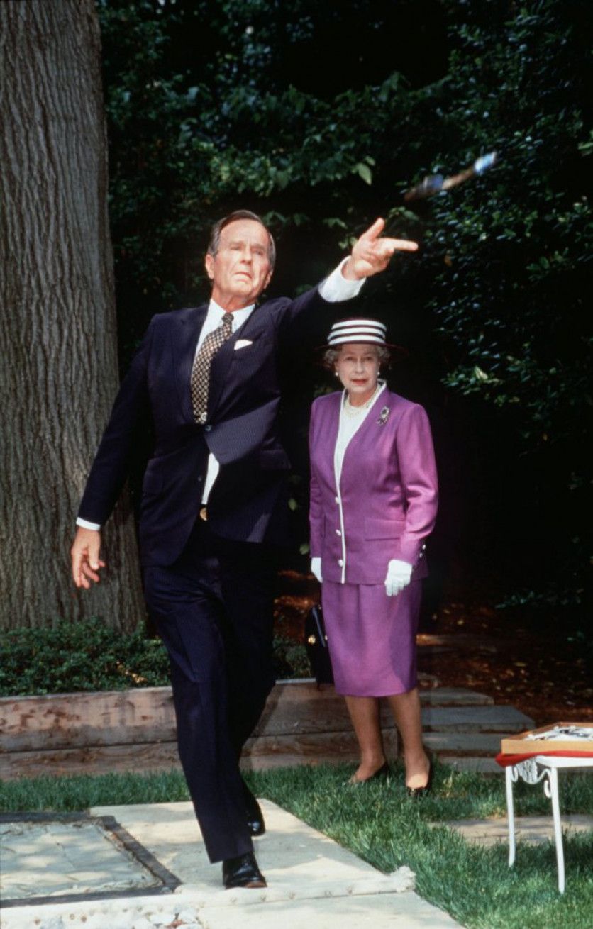 Cuando Isabel II visitó Washington en mayo de 1991, poco después de la Guerra del Golfo, el presidente George Bush, padre comentó que desde que Isabel se había "unido a la guerra contra el fascismo" cuando era una joven princesa que colaboraba en la Segunda Guerra Mundial a la edad de 18 años, los estadounidenses habían llegado a reconocerla como uno de los suyos. "Llegaron a amarte por la libertad, invocando a través de los océanos nuestros valores y nuestros sueños". TIM GRAHAM GETTY IMAGES