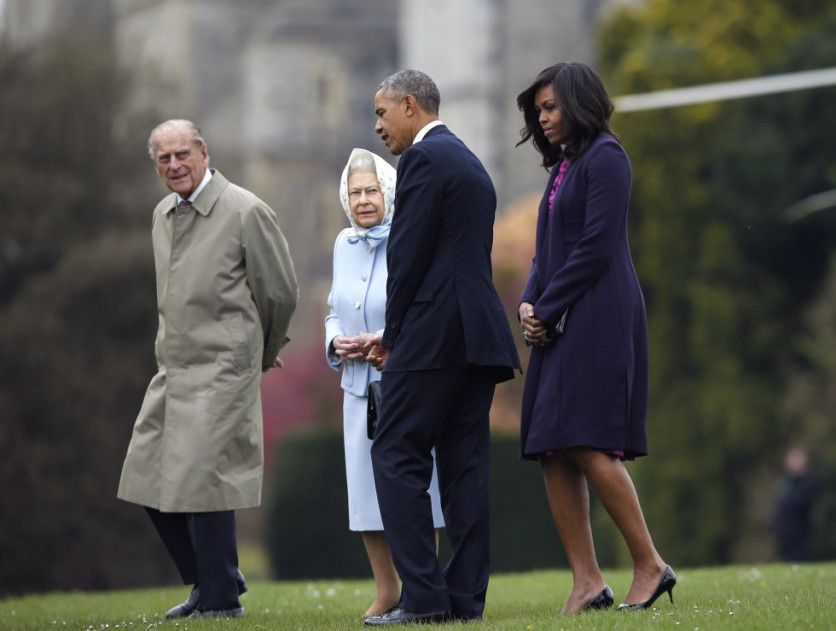 En la foto, el presidente de Estados Unidos, Barack Obama, y su esposa, la primera dama, Michelle Obama, son recibidos por la reina Isabel II y el príncipe Felipe, duque de Edimburgo, tras aterrizar en helicóptero en el castillo de Windsor para un almuerzo privado el 22 de abril de 2016. Obama se encontró varias veces con Isabel II. La primera vez que el presidente y Michelle se reunieron con la monarca fue en 2009, cuando Obama estaba en Londres para la cumbre del G-20. Allí, obsequiaron a Isabel II con un iPod que contenía vídeos y fotos de sus visitas estadounidenses en 1957 y en 2007 y el discurso de la convención de Obama de 2008 y el discurso inaugural de 2009. En 2011, los Obama fueron al Reino Unido poco después de la boda real entre Guillermo y Catalia, a la que el presidente y la primera dama no asistieron. Allí tuvieron una reunión privada de 20 minutos con el duque y la duquesa de Cambridge. En aquella ocasión, los Obama se quedaron en el palacio de Buckingham durante dos días, donde la reina celebró una cena de Estado; ellos correspondieron con la celebración de otra cena de Estado en Winfield House, la casa oficial del embajador de Estados Unidos. GETTY IMAGES