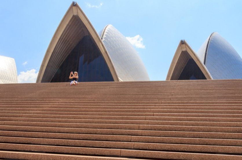 Ópera de Sídney La zona de la bahía de Sídney, con el conjunto formado por la Ópera y el Puente, es el lugar más fotografiado de Australia. Un lugar clásico (y normalmente atestado) para disfrutar de la postal es Mrs Macquaries Point, un banco tallado en la piedra cercano a los Jardines Botánicos Reales. La Ópera, en concreto, suma a su fotogenia expresionista y a sus fácilmente reconocibles conchas prefabricadas de hormigón, el morbo que despierta las polémicas por retrasos y sobrecostes que acompañaron a su construcción: se inauguró en 1973, diez años después de lo previsto, con un coste de 102 millones de dólares de la época, 14 veces más de lo presupuestado. El arquitecto que ganó el proyecto, el danés Jørn Utzon, fue despedido antes de terminar las obras, aunque ganó el Premio Pritzker en 2003. Más información: Turismo de Sídney KEVIN HELLON ALAMY