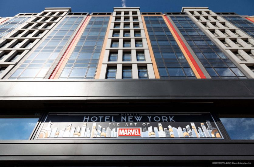 Entrada al hotel de Marvel. La fachada cuenta con un estilo newyorkino muy elegante que evoca a la legendaria Gran Manzana.