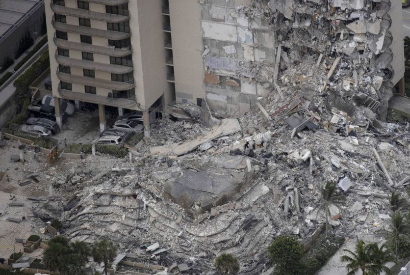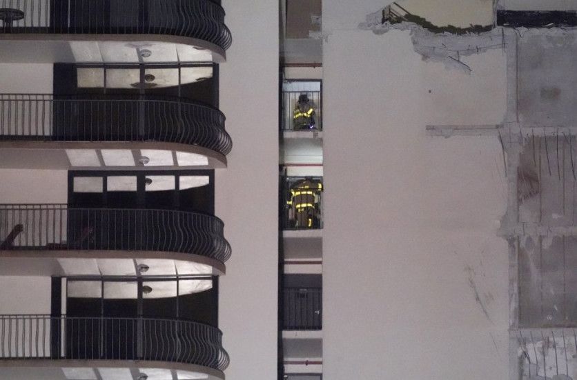 Detalle del edificio dañado. De momento se desconocen las causas del derrumbe. Hasta el lugar se han desplazado 80 dotaciones de rescate entre policía y miembros de los distintos cuerpos de bomberos del condado de Miami-Dade.