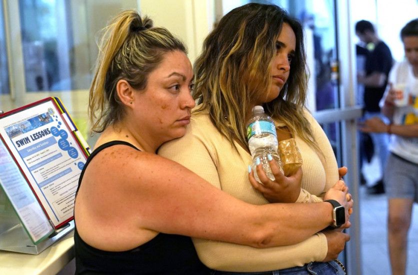Dos mujeres se abrazan en un centro de reunificación familiar, establecido entre la calle 93 y la avenida Collins para la búsqueda de desaparecidos.