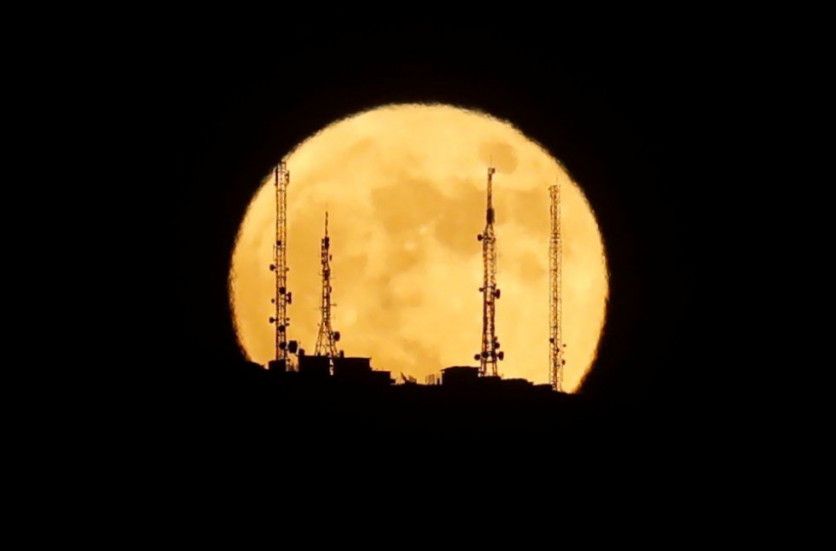 La Luna de fresa vista detrás de unas antenas de televisión. en Ronda (España). JON NAZCA REUTERS