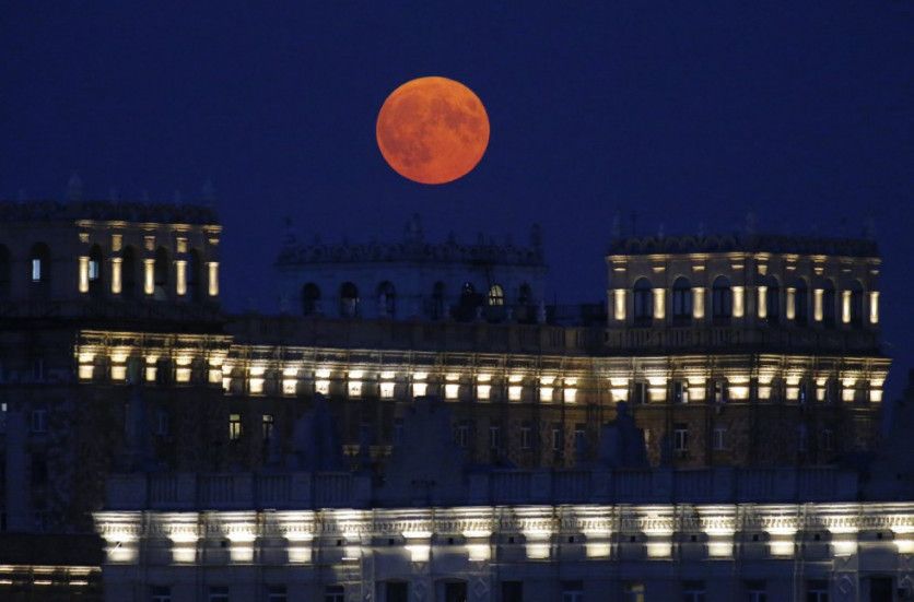 La última superluna del año, visible entre los edificios de la ciudad de Moscú (Rusia). ALEXANDER ZEMLIANICHENKO JR AP