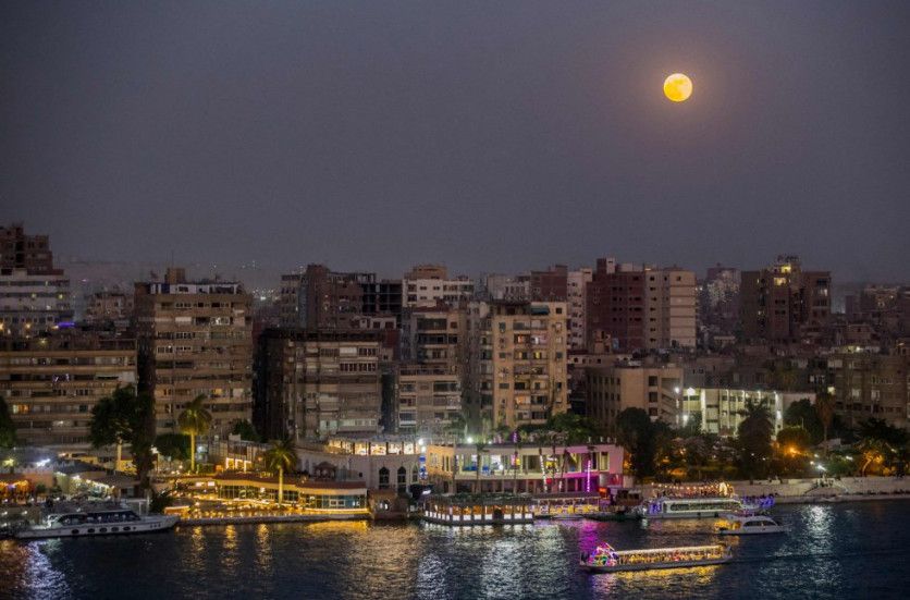 La Luna de fresa vista sobre la ciudad de El Cairo (Egipto). KHALED DESOUKI AFP