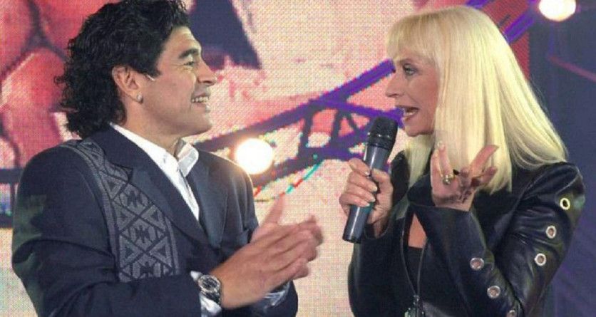 En las manos de 'Dios'. La trayectoria de la Carrà en las televisiones de medio mundo dio imágenes tan únicas e icónicas como esta en la grabación del programa 'La noche del 10', programa presentado por Diego Armando Maradona en la televisión argentina.