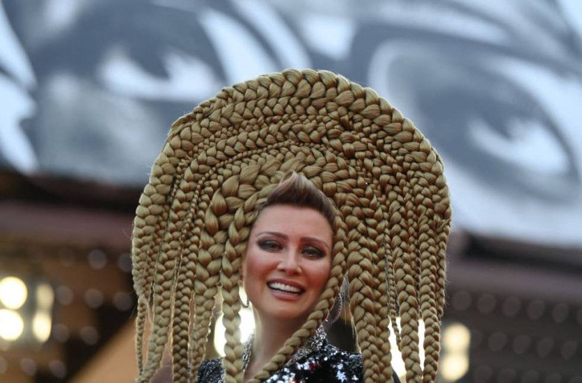 La presentadora rusa de televisión Elena Lenina posa para los medios gráficos a su llegada a la alfombra roja de Cannes, este miércoles. CHRISTOPHE SIMON AFP