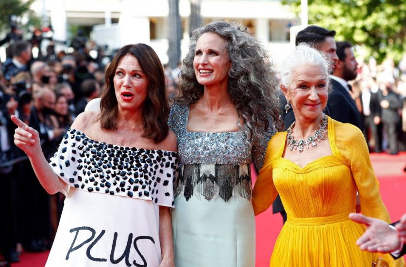 Desde la izquierda, las actrices Iris Berben, Andie MacDowell y Helen Mirren, durante la presentación de la película 'Annette'. JOHANNA GERON REUTERS