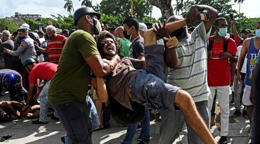 La chispa comenzó en el pequeño poblado habanero de San Antonio de los Baños, donde cientos de personas se echaron a la calle por los largos apagones y en demanda de ser vacunados, pero después pidiendo "libertad" y cambios políticos. La protesta se extendió por las redes sociales hasta La Habana. REUTERES