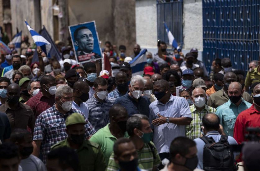 Ante la magnitud de las protestas, el presidente cubano, Miguel Díaz-Canel, se trasladó a San Antonio de los Baños al mediodía y recorrió el pueblo, habló de la difícil situación epidemiológica que vive el país y de los esfuerzos del Gobierno para hacerle frente. RAMÓN ESPINOSA AP