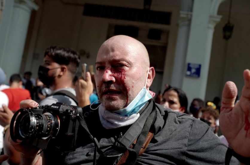 El fotógrafo español de la agencia de noticias Associated Press Ramón Espinosa fue agredido por agentes mientras cubría las protestas. Los detenidos por la policía fueron más de un centenar, pero no se disolvió la manifestación con gases lacrimógenos. ADALBERTO ROQUE AFP