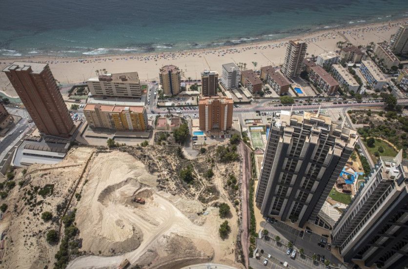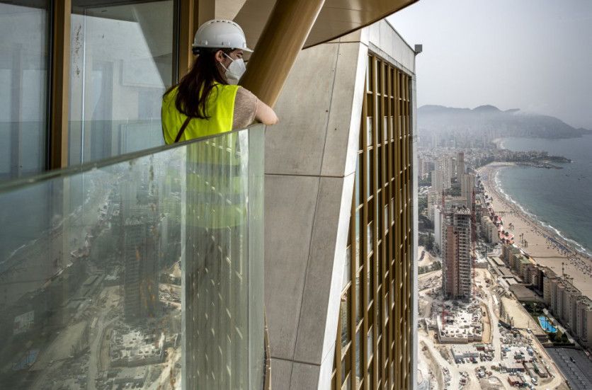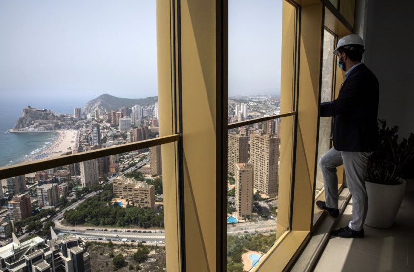El rascacielos Intempo se eleva 198 metros sobre el suelo en Benidorm, lo que lo convierte en la construcción más alta de la ciudad alicantina. MÒNICA TORRES