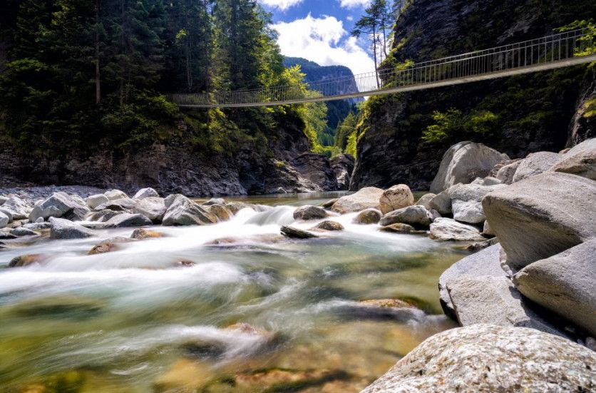 Desfiladero de Viamala (Suiza) Hace más de 2.000 años ya se usaba este angosto desfiladero como acceso a los puertos de los Alpes, aunque se hacía siempre de muy, muy mala gana por el peligro de que le cayera a uno una roca encima o se produjera una violenta crecida de las aguas. De ahí el nombre en retorrománico -Viamala- de esta garganta. Hoy este romántico desfiladero ya no da miedo y se ha convertido en un atractivo turístico más, en especial el puente colgante de 56 metros de largo que salva el valle. MAKASANA GETTY