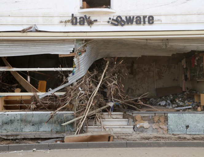 Negocios acabados. Una de las muchas tiendas dañadas por las violentas riadas en Ahrweiler, Alemania. EFE / FRIEDEMANN VOGEL
