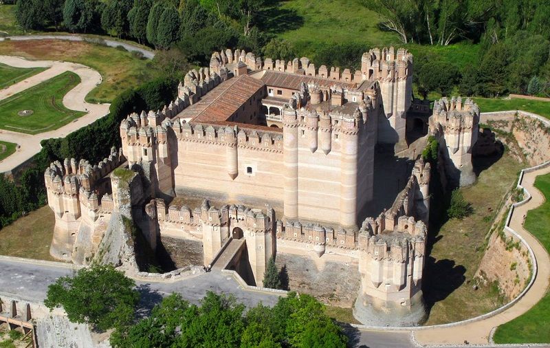Castillo de Coca (Segovia). Situado a las afueras de la villa de Coca (Segovia), de la que recibe su nombre. Se levanta sobre el meandro del río Voltoya, afluente del Eresma. Construido en el siglo XV sobre una explanada de una zona escarpada,