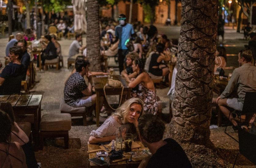 Las terrazas de la isla se benefician de la relajación en las restricciones sanitarias. En la imagen, una de ellas en el centro de Ibiza. OLMO CALVO