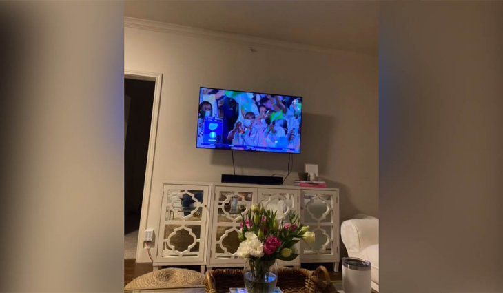 Megan identificó en el reflejo de uno de los muebles se ven las piernas de un chico y de una chica. Además, los dos estaban tomando una copa de vino y la casa tenía una decoración sumamente femenina, llena de flores y libros de marcas de moda.