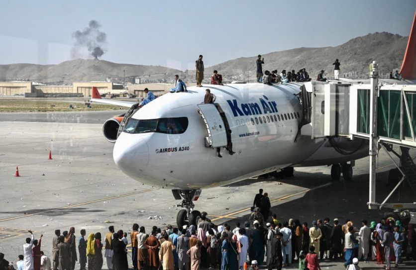Una multitud se agolpa para escapar de los talibanes en el aeropuerto de Kabul. AFP
