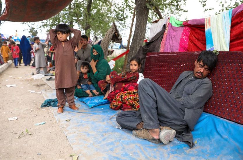 Familias desplazadas internamente de las provincias del norte, que huyeron de sus hogares debido a los combates entre los talibanes y las fuerzas de seguridad afganas, se refugian en un parque público de Kabul, en Afganistán, el 14 de agosto. HEDAYATULLAH AMID EFE