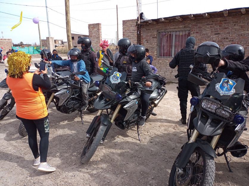 Efectivos de la Unidad Motorizada de Acción Rápida, con el apoyo del Rotary Club de Guaymallén, organizaron un festejo por el Día de la Niñez.