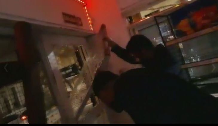 Completamente fuera de sí, el chico comenzó a atacar el lugar a patadas, rompiendo puertas, vidrieras y todo lo que encontraba a su paso.