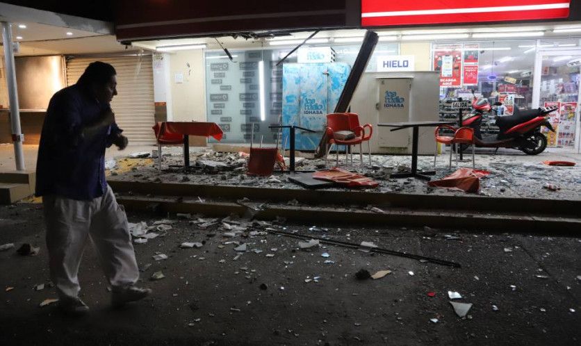 Una mujer camina frente a los destrozos ocasionados por el seísmo en un negocio en Acapulco. DAVID GUZMAN EFE