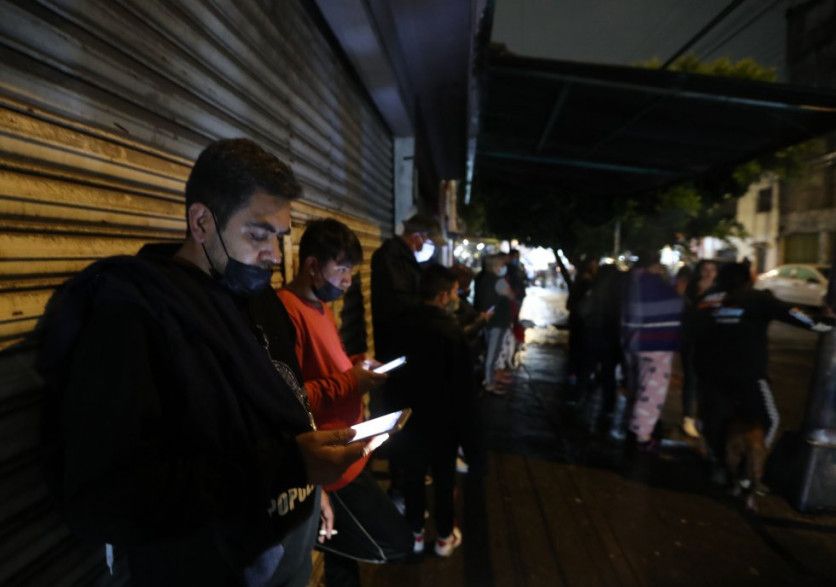 El sismo se percibió en distintas zonas del país, entre ellas la capital. En la imagen, varias personas evacuadas de sus edificios revisan sus móviles tras el temblor. MARIO GUZMÁN EFE