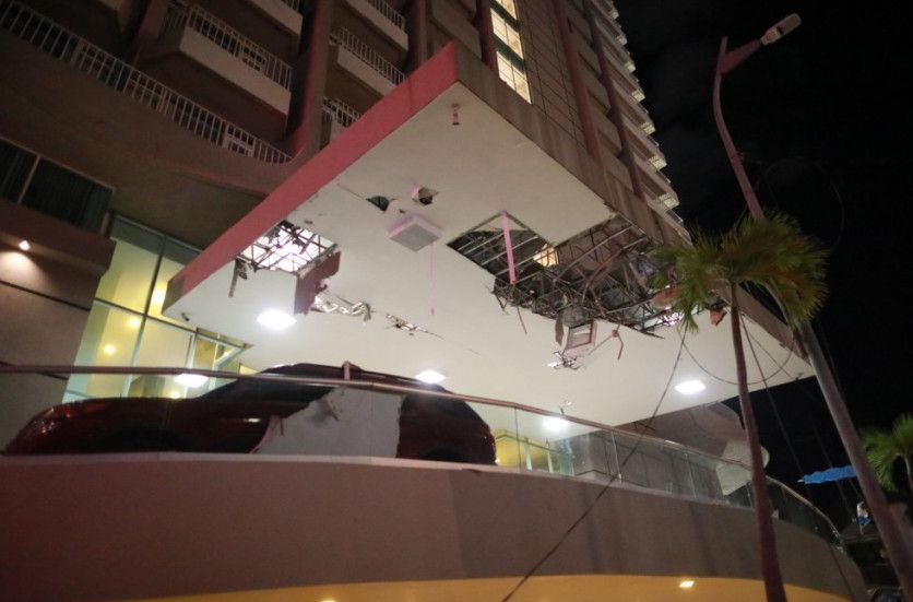 La marquesina de entrada a un hotel en Acapulco, dañada tras el temblor. En Guerrero se han activado los protocolos de seísmo: evacuación de edificios y hoteles. DAVID GUZMAN EFE