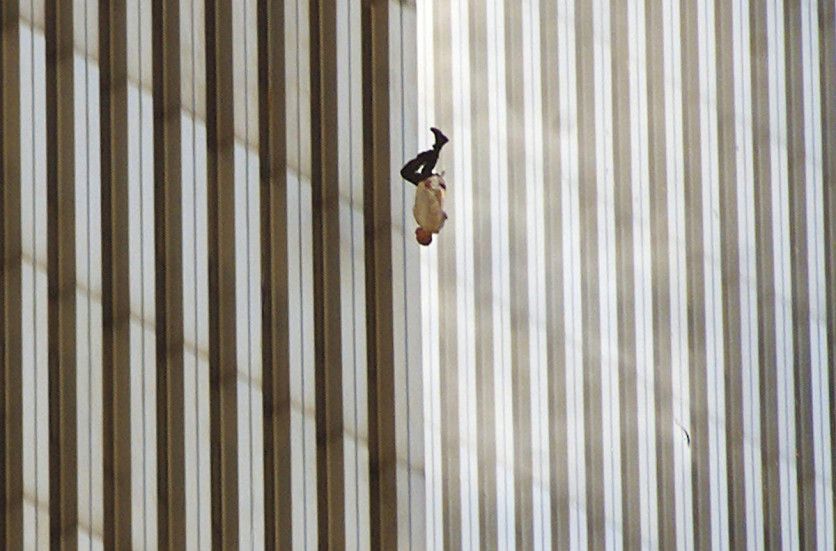 Conocida como "El hombre que cae", la fotografía fue tomada a las 9.41 de la mañana por el reportero gráfico Richard Drew, de la agencia AP y corresponde a la Torre Norte. Nunca se supo la identidad de esa persona