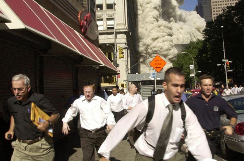 Tras el colapso, la gente huye despavorida de la zona donde se ubicaba el World Trade Center AP